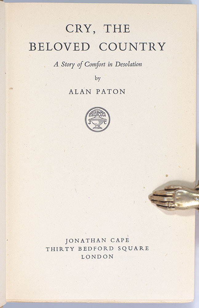 First edition of Paton’s classic novel. Octavo, original cloth. Fine in a near fine dust jacket.