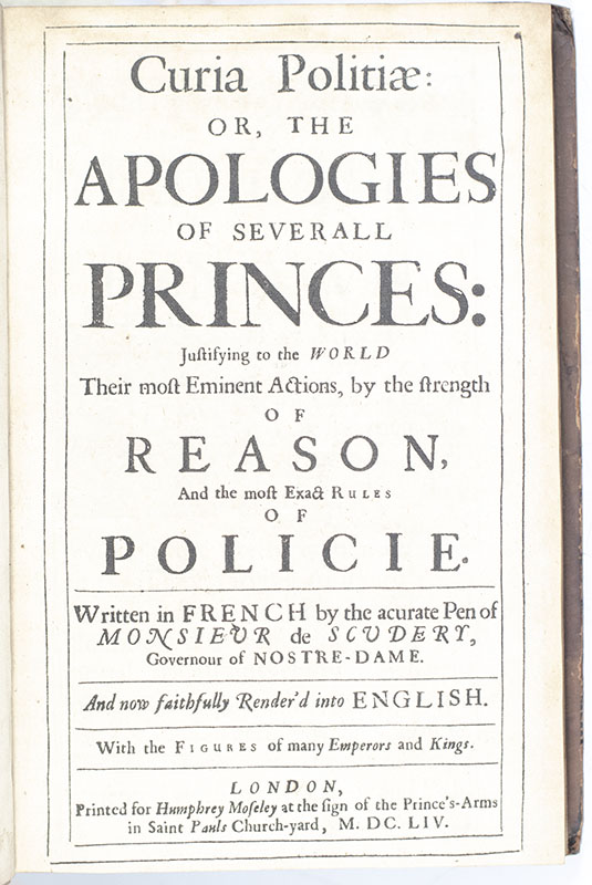 First edition of Georges de Scudéry's Curia Politiae: Or, The Apologies of Several Princes