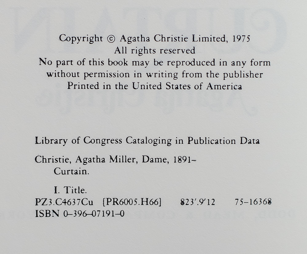 “Everyone is a potential murderer...”: First American edition of Agatha Christie's Curtain