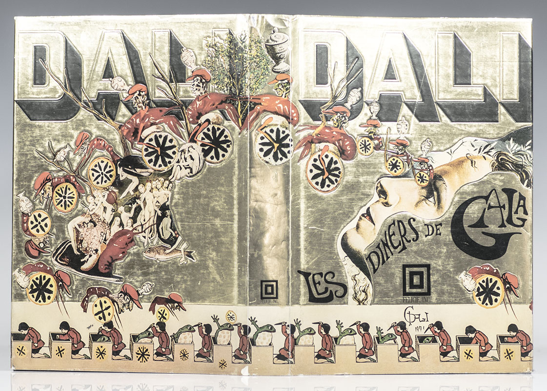 First edition of this extravagant, lavishly illustrated cookbook created by Dalí in honor of his wife Gala. Quarto, original color-printed pictorial cloth, original decorative stiff paper dust jacket, illustrated throughout. Fine in a near fine dust jacket. Translated by Captain J. Peter Moore.