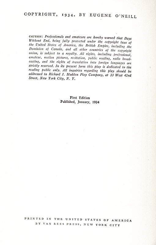 First Edition of Eugene O'Neill's Days Without End