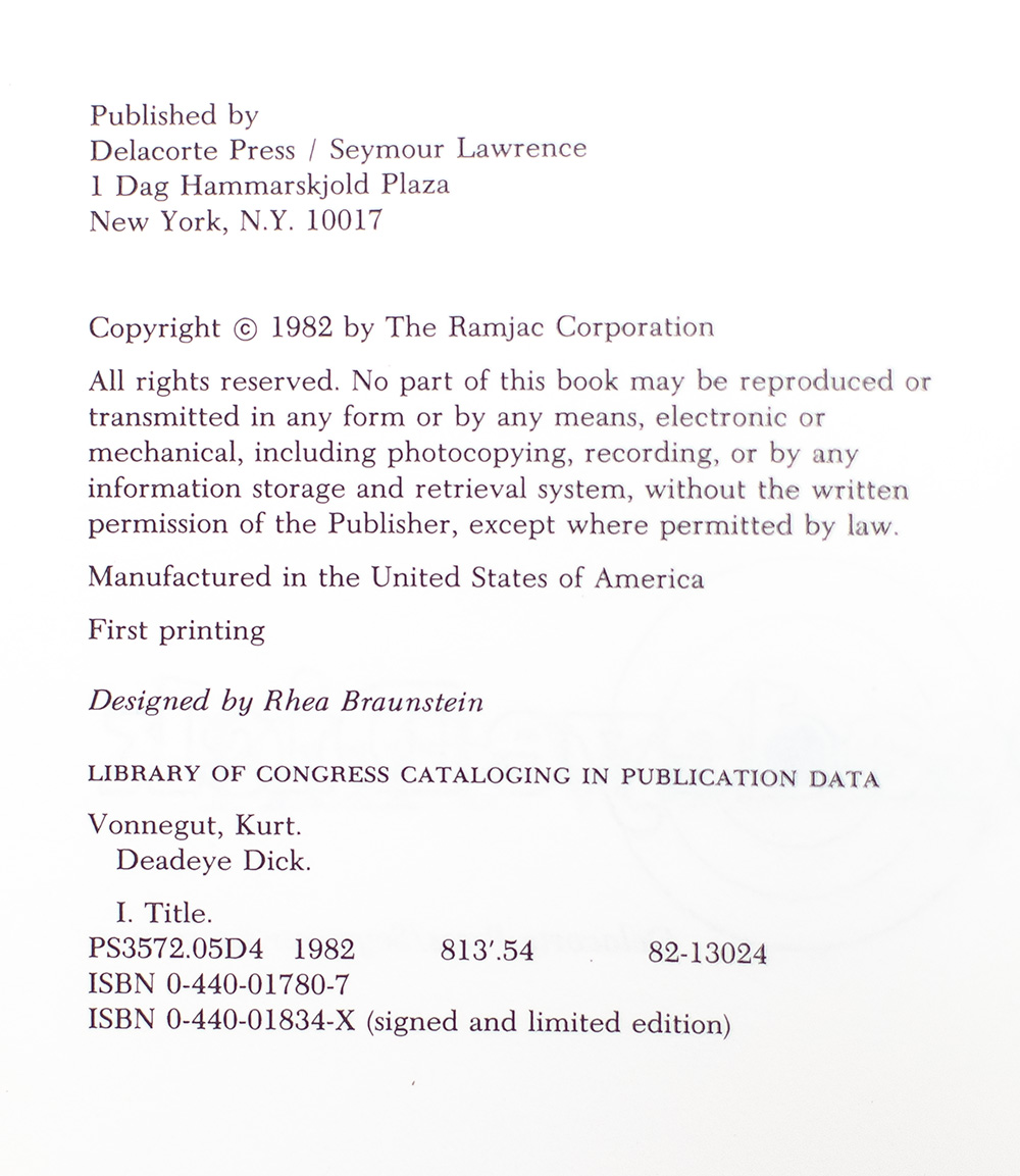 First Edition of Kurt Vonnegut's Deadeye Dick