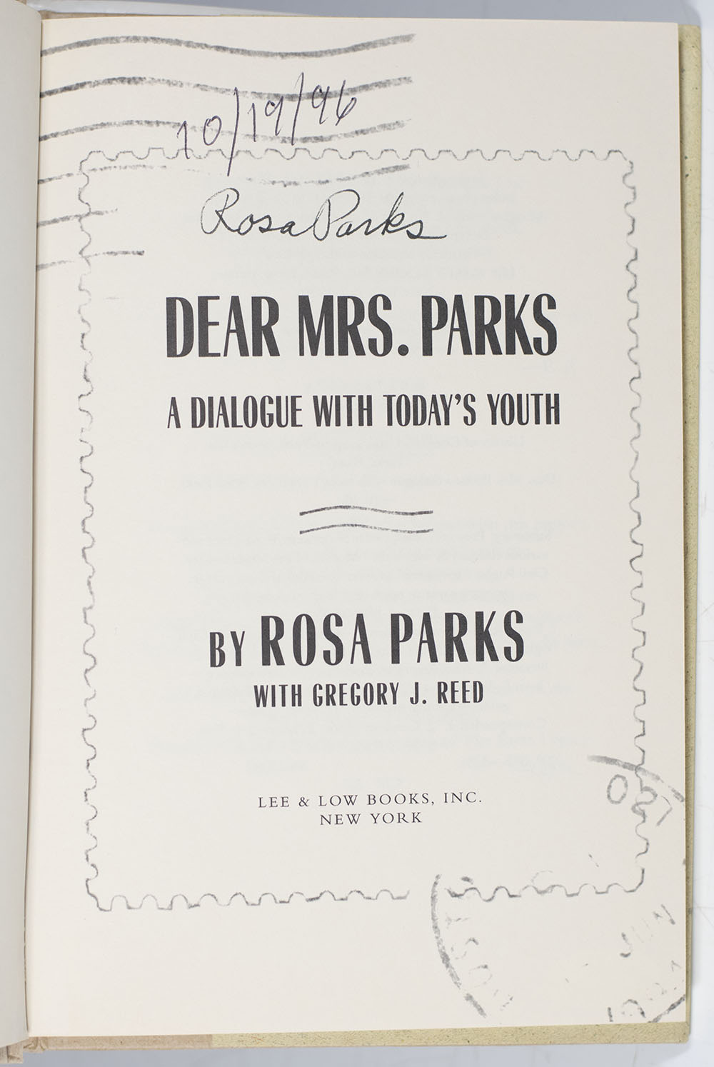 First Edition of Dear Mrs. Parks: A Dialogue with Today's Youth; Signed by Her