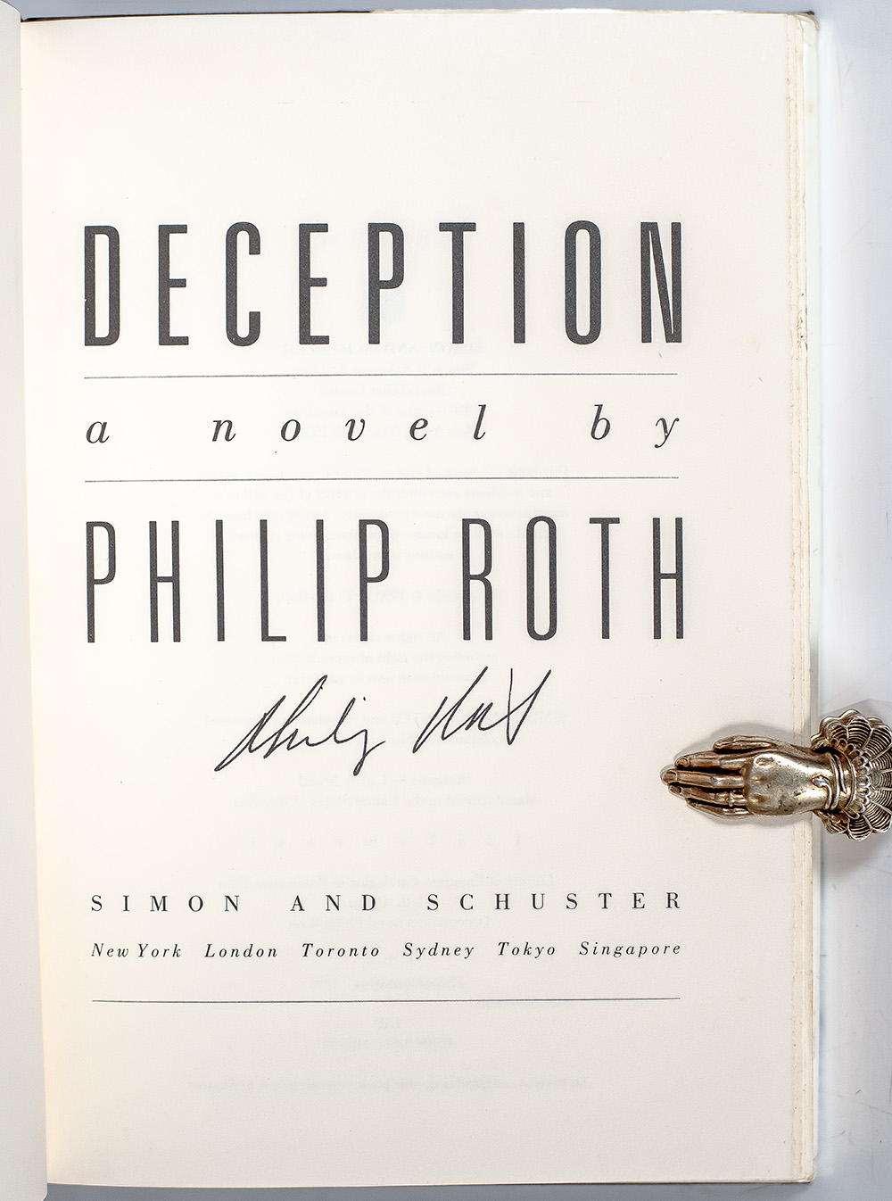 First Edition of Philip Roth's Deception; Signed by Him
