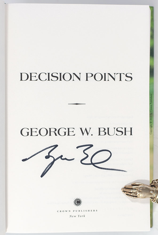 First edition of George W. Bush's autobiography. Octavo, original half cloth, illustrated. Boldly signed by George W. Bush on the half-title page. Fine in a fine dust jacket. Jacket design by W.G. Cookman.