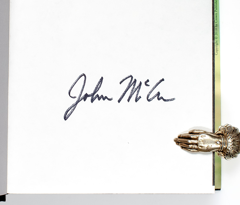 First edition of George W. Bush's autobiography. Octavo, original half cloth, illustrated. Boldly signed by war hero and Senator John McCain on the half-title page. Fine in a fine dust jacket. Jacket design by W.G. Cookman.