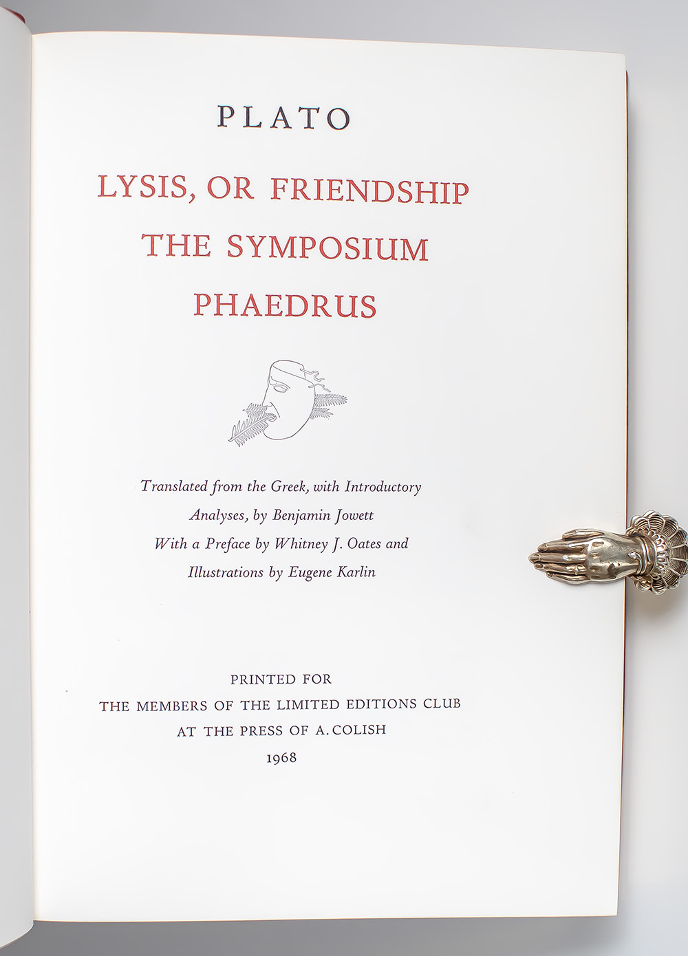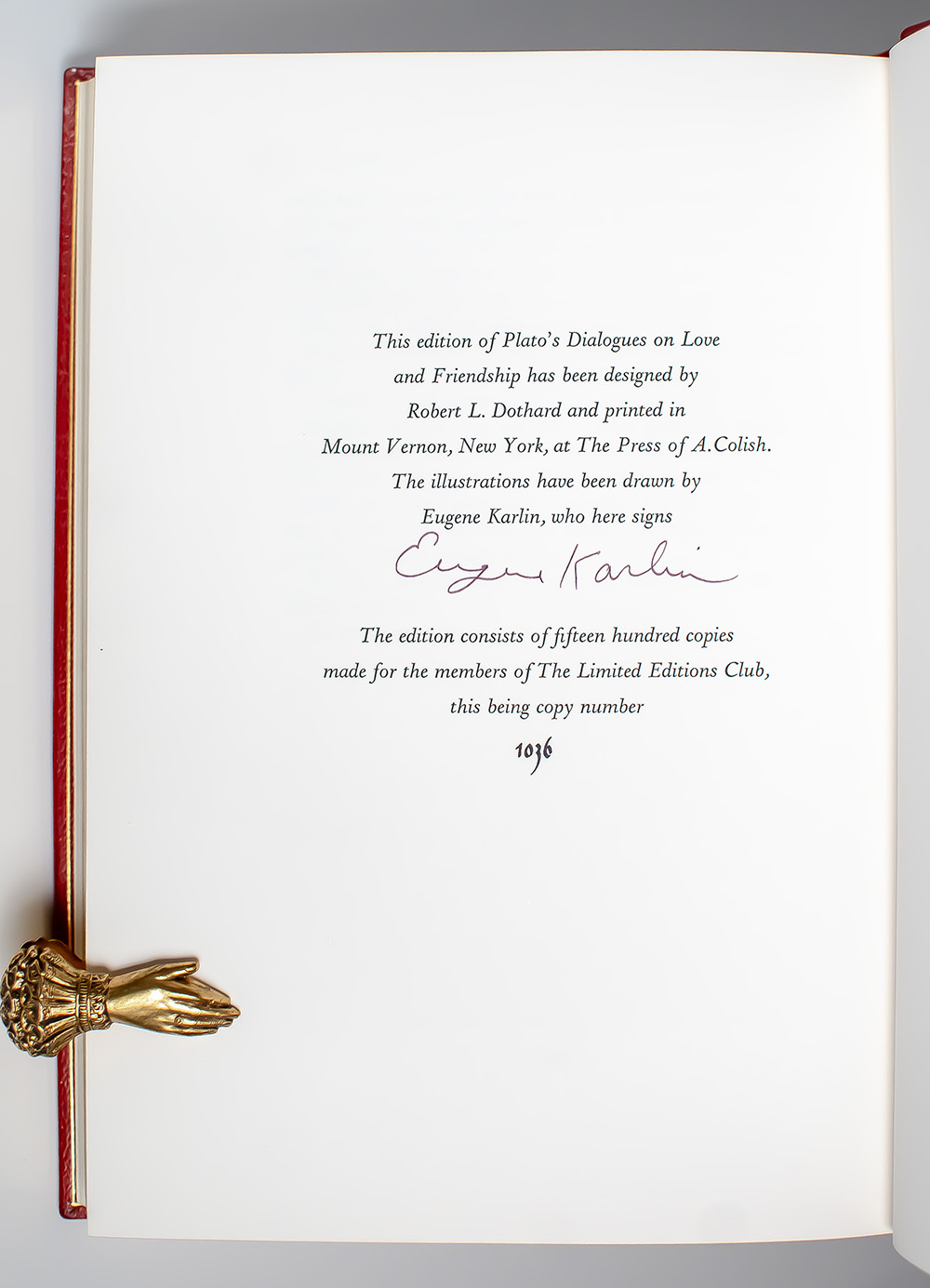“At the touch of love everyone becomes a poet”: The Limited Editions Club Edition of Plato's Dialogues On Love and Friendship; signed by illustrator Eugene Karlin