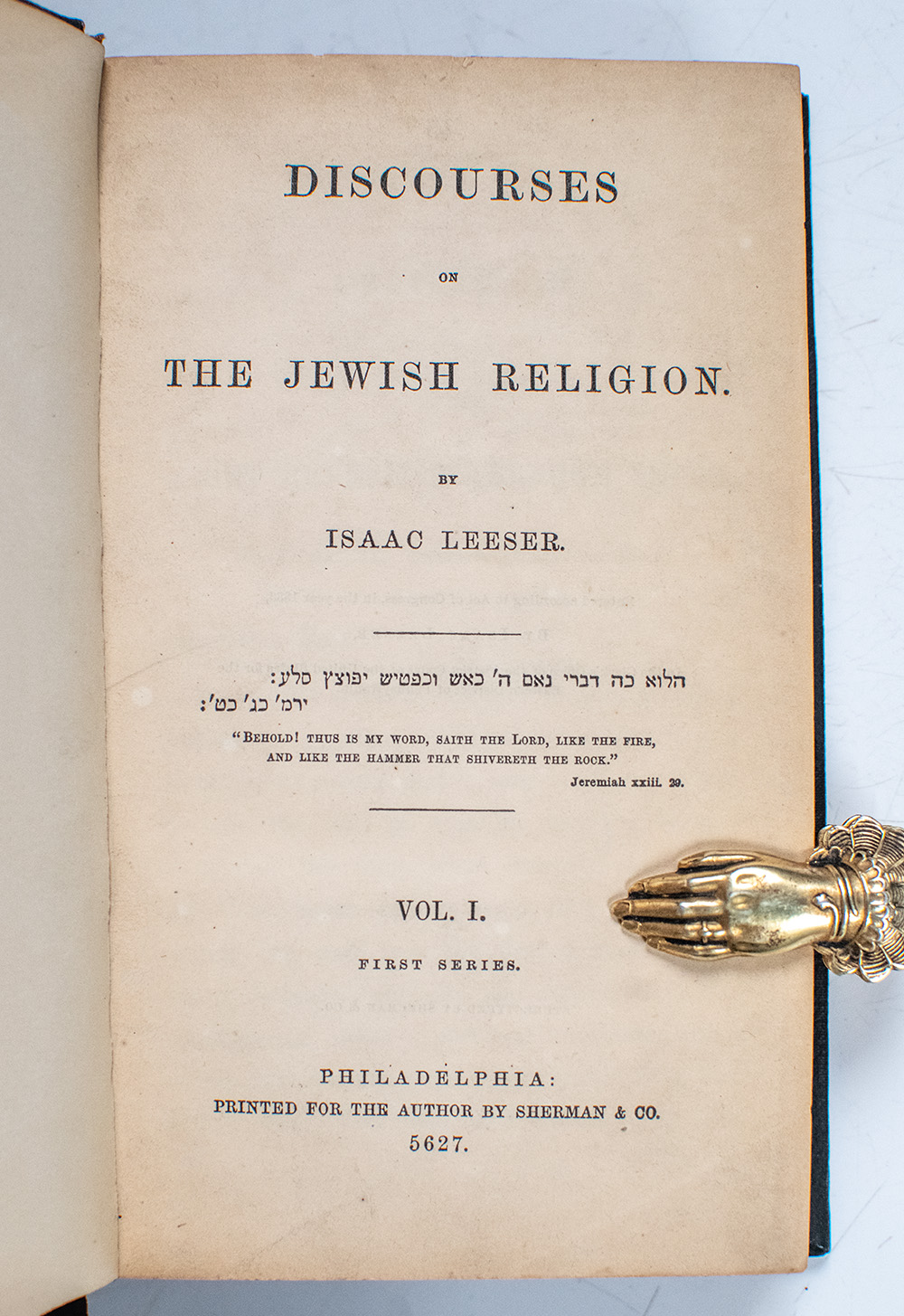 First Edition of Issac Leeser's Discourses on the Jewish Religion