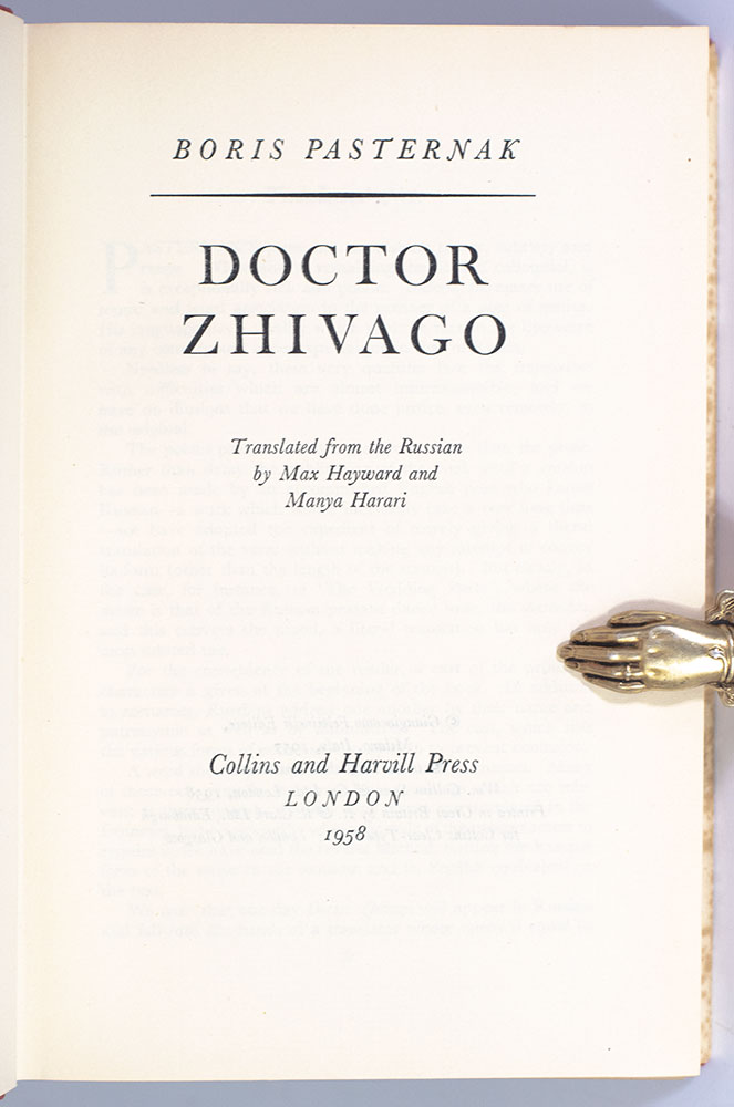 “I have the impression that if he didn't complicate his life so needlessly, he would die of boredom": First Edition in English of Boris Pasternak's Masterpiece Doctor Zhivago