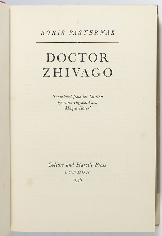 “I have the impression that if he didn't complicate his life so needlessly, he would die of boredom": First Edition in English of Boris Pasternak's Masterpiece Doctor Zhivago