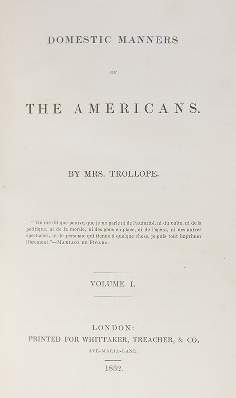 First edition of Frances Trollope's Domestic Manners of the Americans