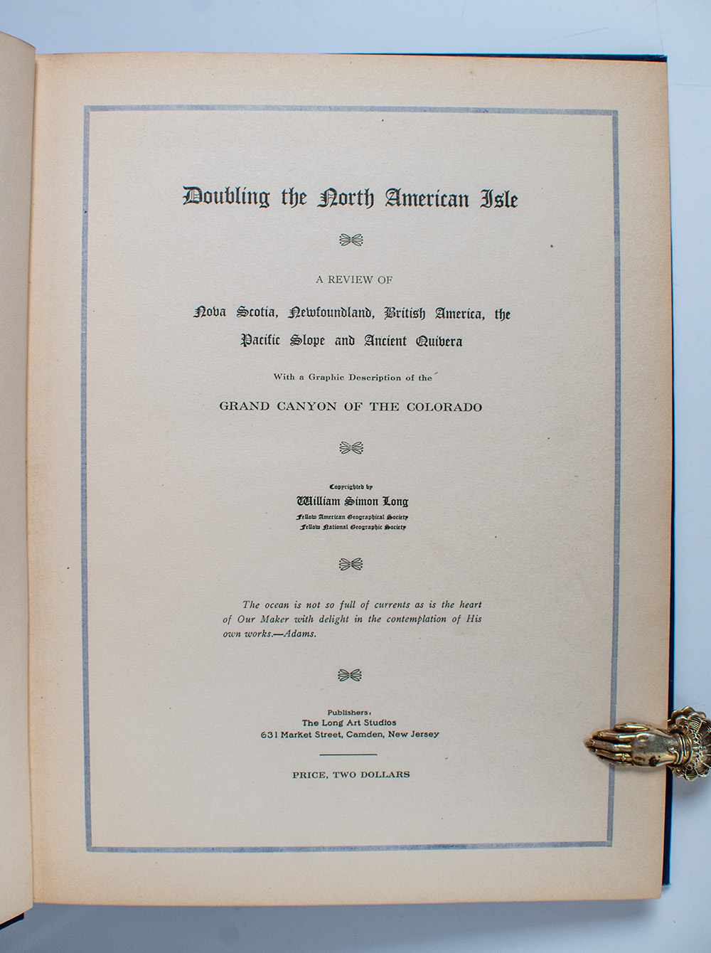 First Edition of Doubling the North American Isle; inscribed by William Simon Long