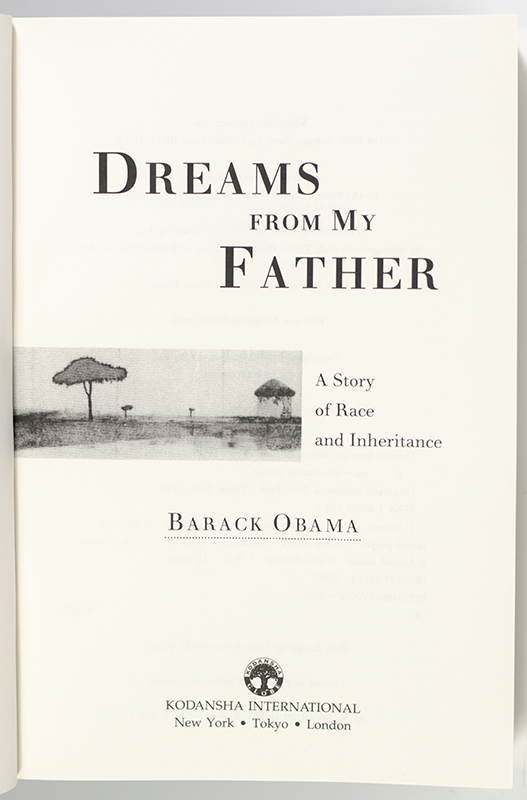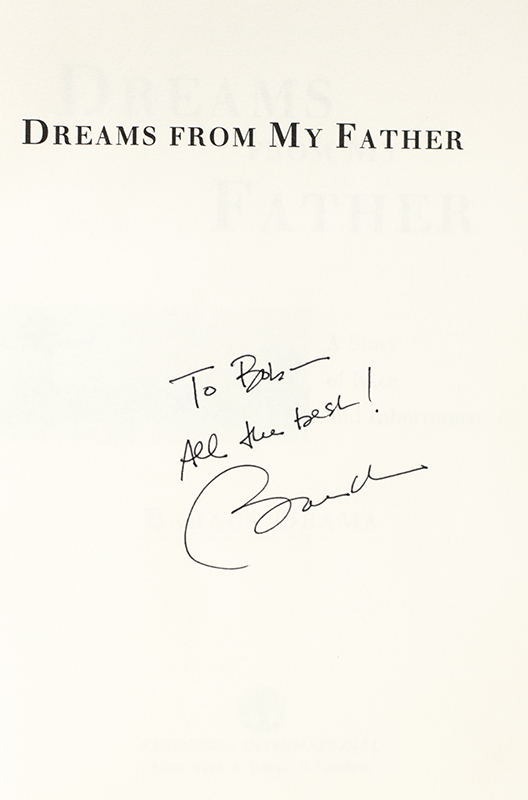 First paperback edition of the future President's first book. Octavo, original half cloth, illustrated. Presentation copy, inscribed by the author on the half-title page, "To Bob - All the best! Barack" In fine condition.