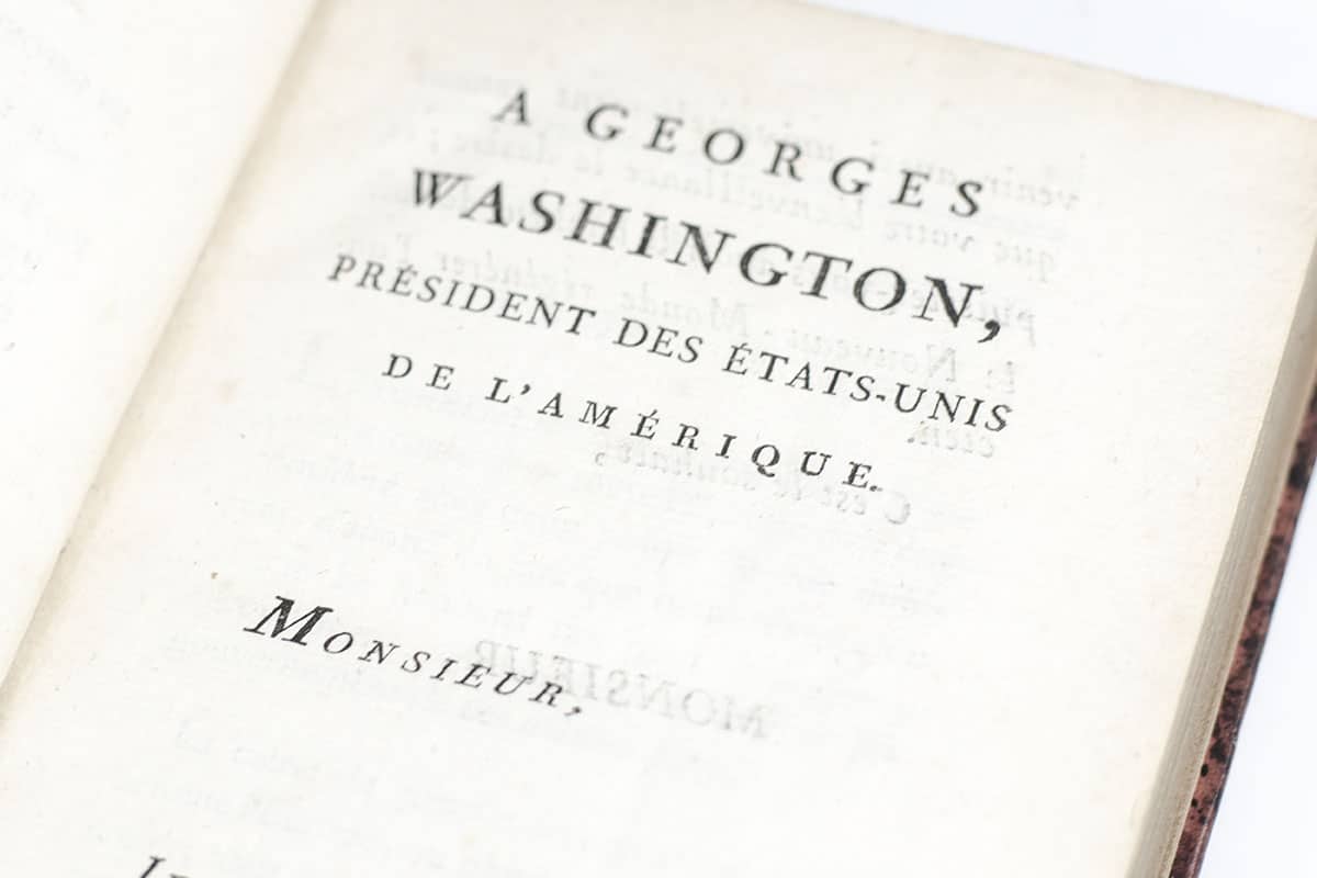 First French edition of Thomas Paine's classic statement of faith in democracy and egalitarianism. Octavo, bound in contemporary one quarter calf over marbled boards. In very good condition. From the library of Virginia bibliophile and historian Christopher Clark Geest with his bookplate to the pastedown. Rare and desirable.