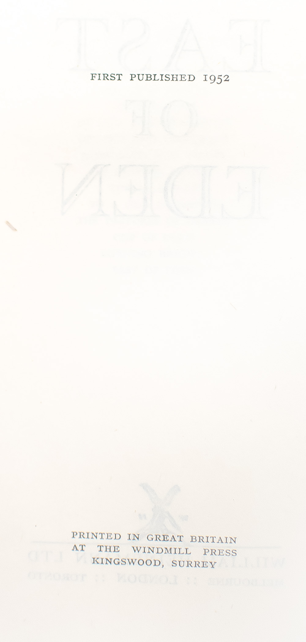 First British edition of Steinbeck's epic and moving story of a modern Cain and Abel. Octavo, original cloth. Boldly signed by John Steinbeck on the half-title page. From the library of actor Douglas Fairbanks, Jr. with his bookplate to the front pastedown. Douglas Fairbanks Jr. was an actor, producer, and decorated naval officer of World War II. He is best-known for starring in such films as The Prisoner of Zenda (1937), Gunga Din (1939), and The Corsican Brothers (1941). He was the son of Douglas Fairbanks and the stepson of Mary Pickford, and his first marriage was to actress Joan Crawford. Near fine in a near fine dust jacket. An exceptional example, rare and desirable signed and with noted provenance.