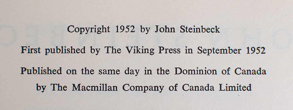 First edition of John Steinbeck's Classic Work East of Eden; with a notecard signed by John Steinbeck