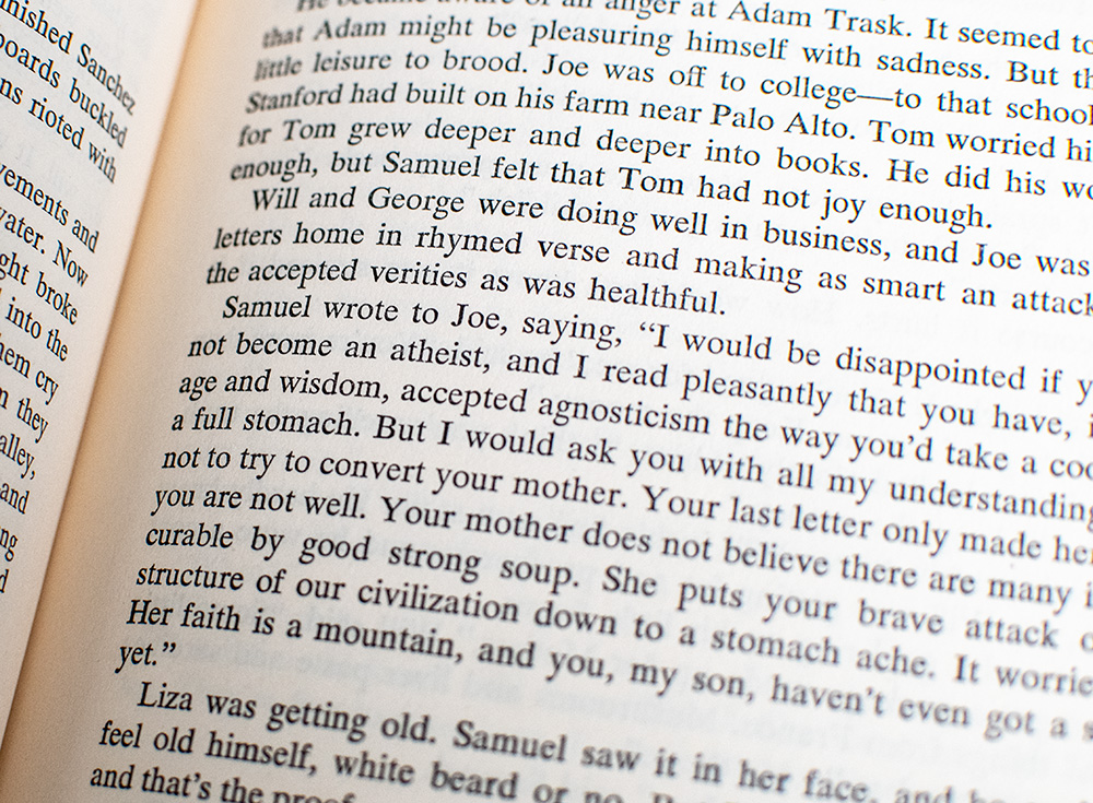First edition, first printing of Steinbeck's epic and moving story of a modern Cain and Abel. Octavo, original cloth. First issue with the word "bite" present on page 281, line 38. With a small notecard signed by John Steinbeck laid in. Near fine in a very good first issue dust jacket with the portrait of Steinbeck. Housed in a custom half morocco clamshell box by the Harcourt Bindery. Founded over a century ago in 1900, the Harcourt Bindery is the oldest and largest traditional bindery in America exclusively devoted to fine traditional leather bookbinding by hand. An exceptional example.