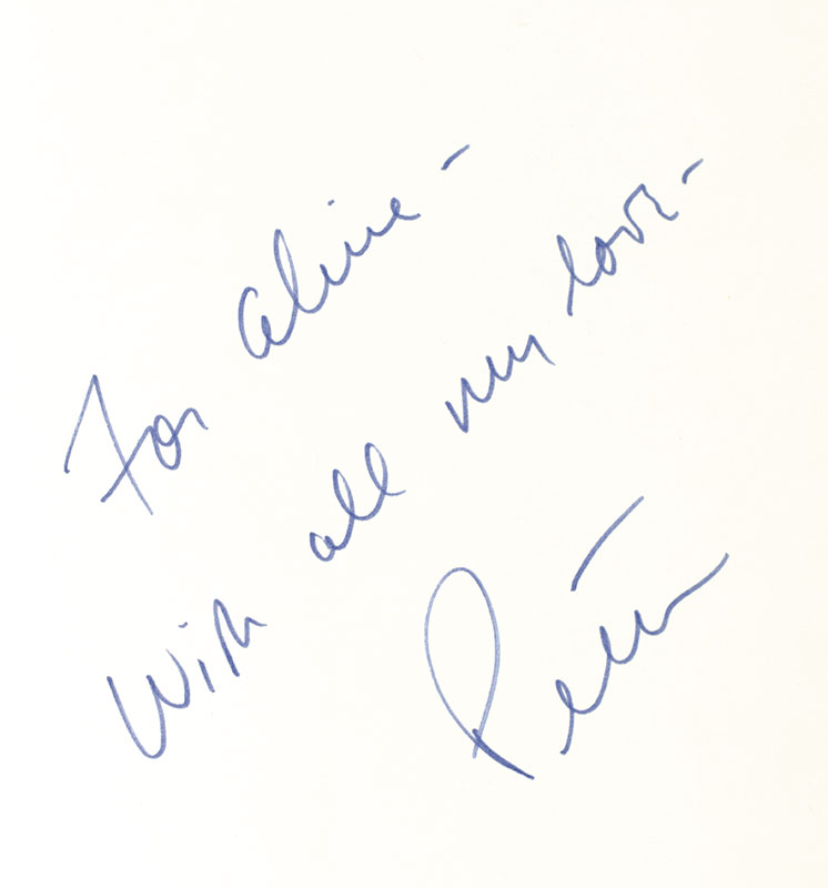 First edition of this classic collection of early Bernstein writings. Octavo, original cloth. Association copy, inscribed by the author on the front free endpaper to the author's sister, "For Aline - With all my love - Peter." The recipient, Aline Bernstein Saarinen was a well-known critic of art and architecture in the United States, an author and a television journalist, who married the architect Eero Saarinen. She was given the International Award for Best Foreign Criticism at the Venice Biennale in 1951. She received the Frank Jewett Mather Award for best newspaper art criticism in 1953, and the American Federation of Arts Award for best newspaper criticism in 1956. In 1964 she turned down an offer from President Lyndon B. Johnson of the post of ambassador to Finland. Aline was awarded an honorary degree by the University of Michigan in 1964 and another by the Russell Sage College in 1967. Fine in a near fine dust jacket. Jacket design by Appelbaum & Curtis. Preface by Gilbert Kaplan. An exceptional association copy.