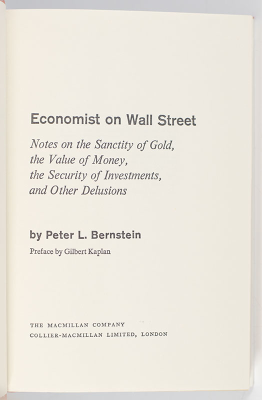 First Edition of Economist on Wall Street; Inscribed by Peter Bernstein to His Sister Aline Bernstein Saarinen