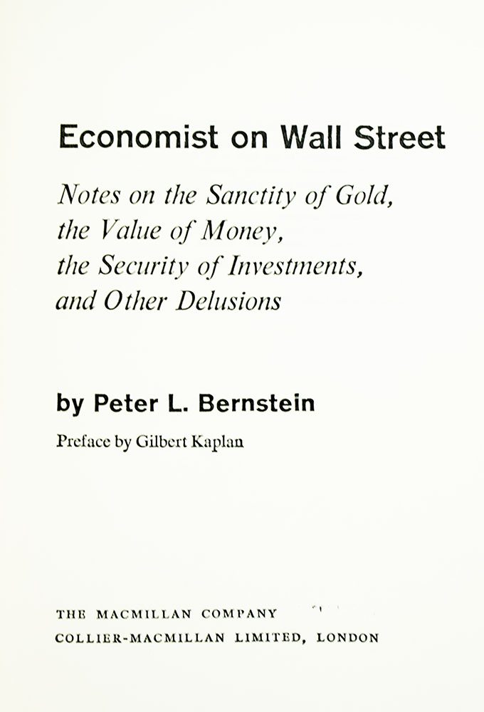 "With Happy Memories and Hopeful Prospects": First Edition of Economist on Wall Street; Inscribed by Peter Bernstein