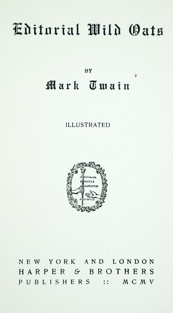 Editorial Wild Oats is a classic American humor collection by Mark Twain, which contains My First Literary Venture, Journalism in Tennessee, Nicodemus Dodge, Printer, Mr. Bloke's Item, How I Edited an Agricultural Paper and The Killing of Julius Caesar 'Localized'.