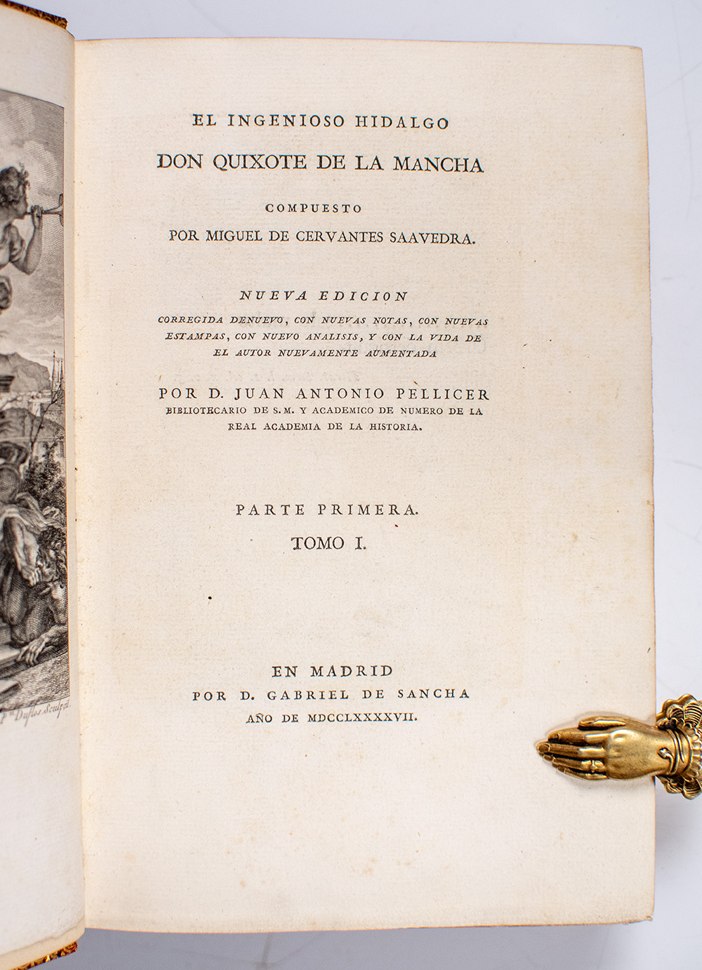 First Edition of Miguel de Cervantes Saavedra's El Ingenioso Hidalgo Don Quixote de la Mancha: Nueva Edicion; finely bound by Clarke & Bedford