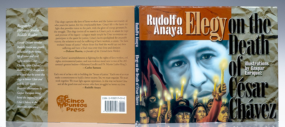 First edition of this powerful tribute to the labor and civil rights activist César Chávez. Oblong octavo, original pictorial boards, illustrated. Presentation copy, boldly inscribed by the author on the title page, "Nancy. Rudolfo Anaya." Near fine in a very good dust jacket in the unique reversible dust jacket with a timeline of the life of César Chávez. Illustrated by Gaspar Enriquez.