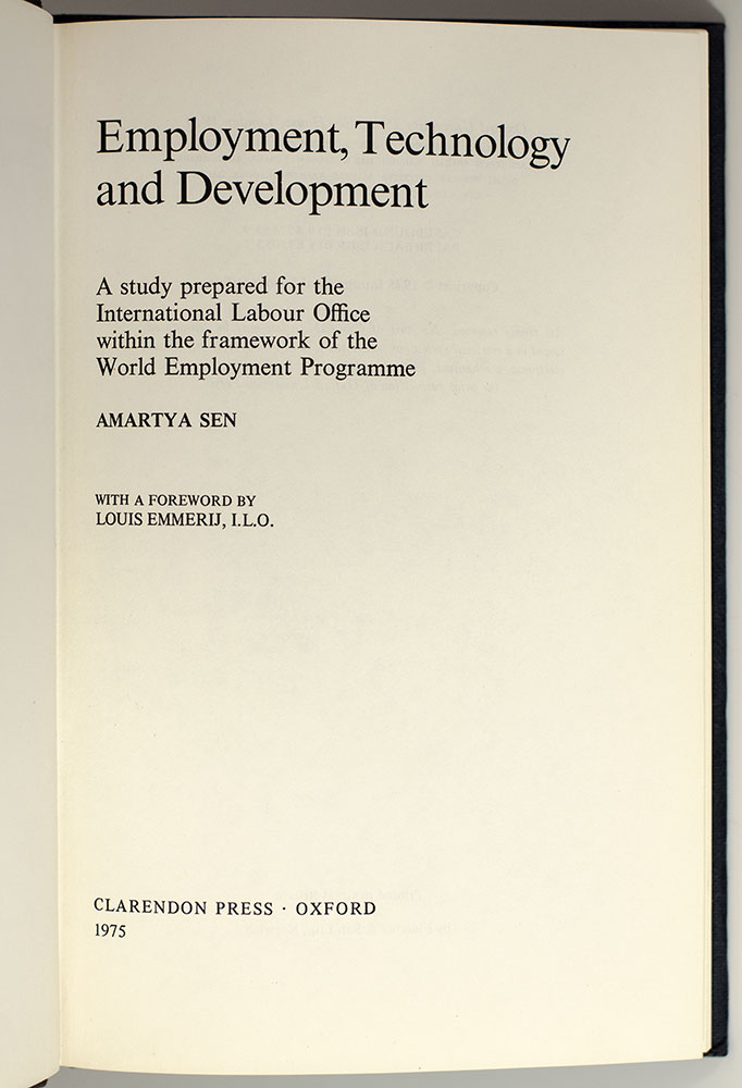 First Edition of Amartya Sen's Employment, Technology and Development; Signed by Him
