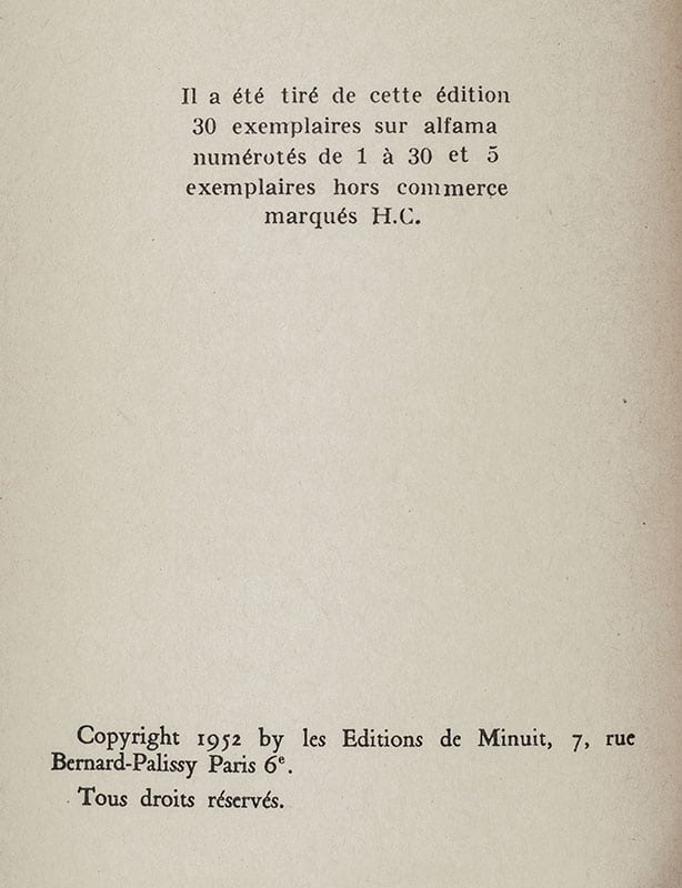 Paris: Les Éditions de Minuit, 1952.