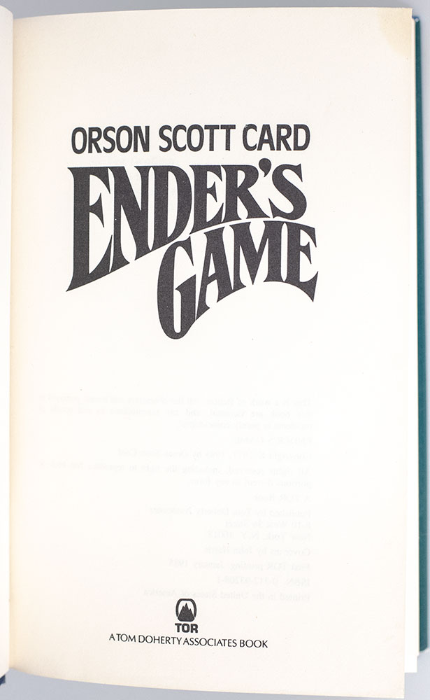The Ender's Game was Card's break-out novel, who "exploded onto the science fiction scene with his first published story, 'Ender's Game' for Analog in 1977… [It] served as the germ for the Ender series, the first two volumes of which, published [in] 1985 and 1986… clearly established [Card] as one of the two or three dominant figures of recent science fiction… The Ender saga stands as one of the very few serious moral tales set among the stars" (Clute & Nicholls). Winner of the 1985 Nebula Award and the 1986 Hugo Award for best novel. It was basis for the 2013 film directed by Gavin Hood, starring Asa Butterfield, Harrison Ford, Hailee Steinfeld, and Viola Davis, with Abigail Breslin and Ben Kingsley.