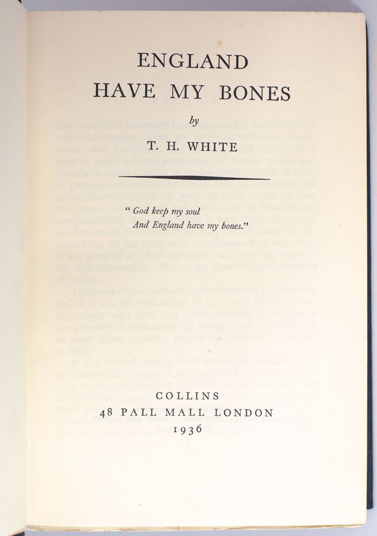 First Edition of T.H. White's England Have My Bones