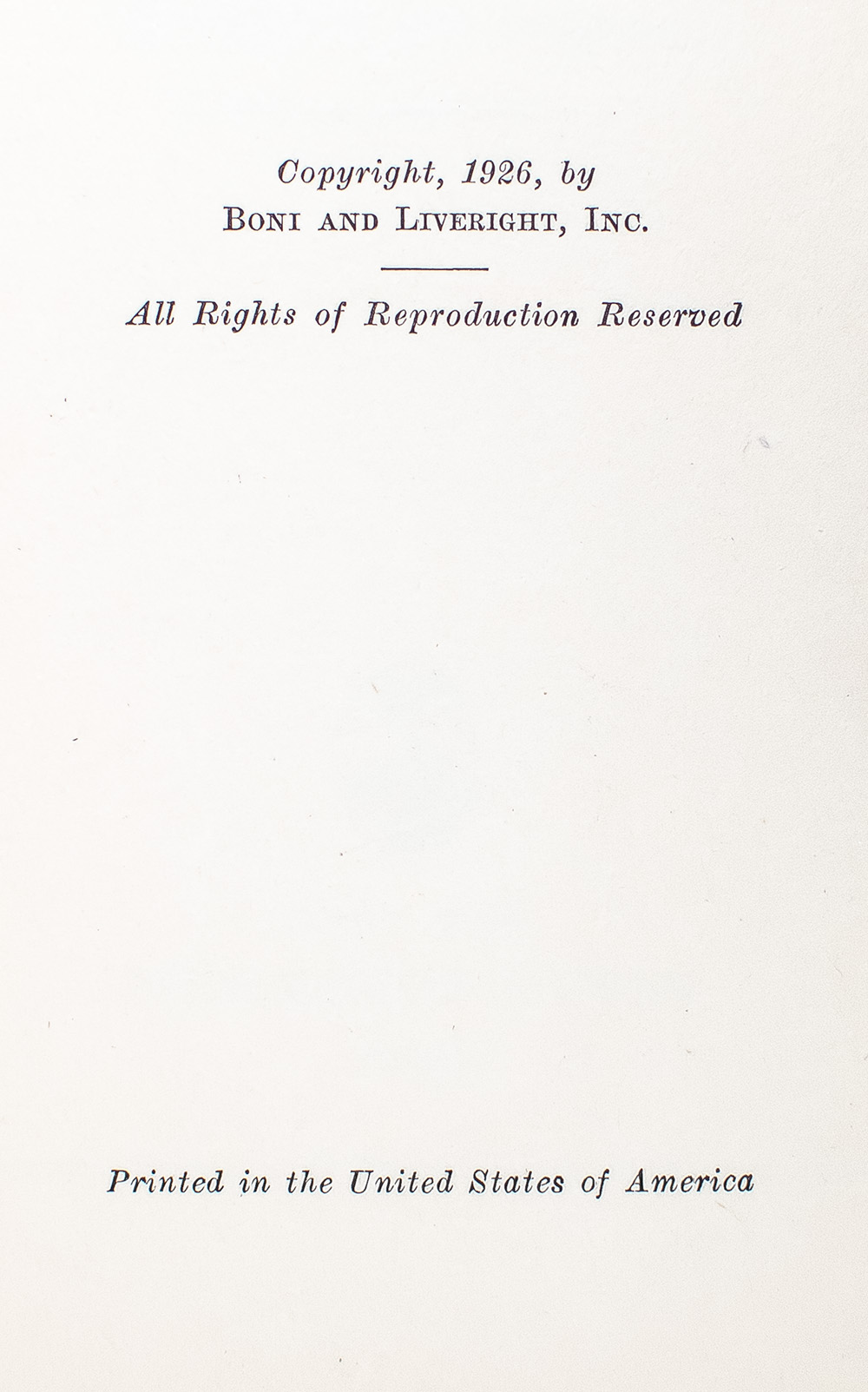 Rare first edition of Parker’s poignant collection of poetry exploring the complexities of human nature. Octavo, original publisher’s half cloth over marbled paper covered boards. In very good condition, name to the front free endpaper.