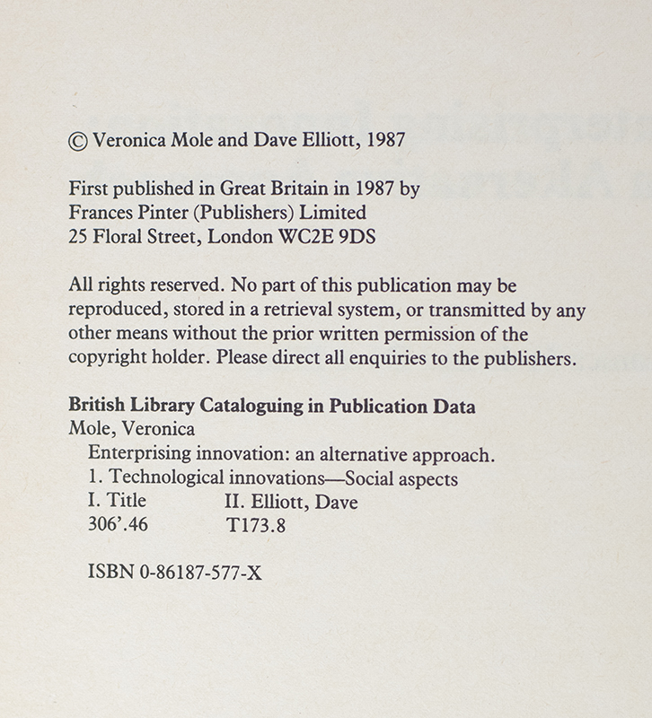 First Edition of Veronica Mole and Dave Elliott's Enterprising Innovation: An Alternative Approach