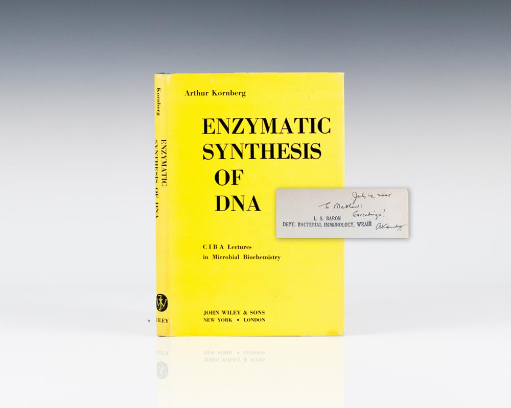 First edition of this work by the Nobel Prize-winning scientist. Octavo, original cloth. Inscribed and dated by Arthur Kornberg on the front free endpaper. Small stamp of Biologist L.S. Baron on the front endpage. Fine in a dust jacket that shows just a touch of wear.
