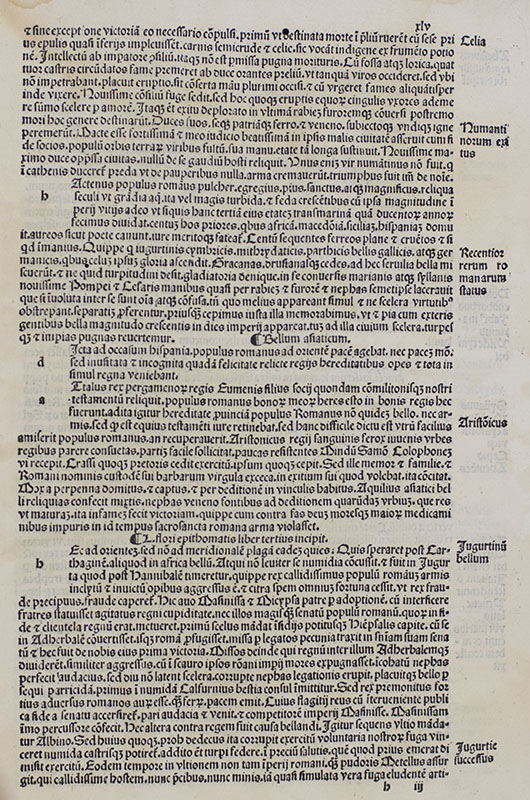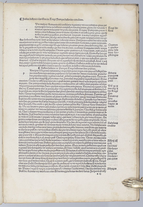 "One of the earliest books printed in Roman type": Rare incunable edition of Justinus's epitome of the Historia Philippica by Pompeius Trogus