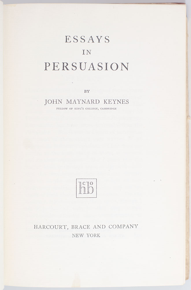 First American edition of John Maynard Keynes' Essays in Persuasion
