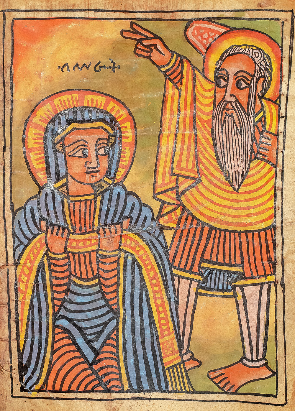 RARE HANDWRITTEN ETHIOPIAN COPTIC GE’EZ BIBLE ILLUMINATED WITH TWO FULL-PAGE MINIATURE PAINTINGS
