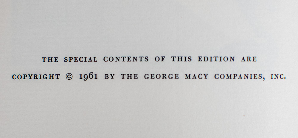 The Heritage Press edition of Balzac’s short novel, later revised to be included in his ambitious project, La Comédie humaine. Royal octavo, bound in three-quarters morocco by Morrell with gilt titles to the spine in six compartments within raised bands, top edge gilt, marbled endpapers, frontispiece, title page vignette, with color illustrations throughout. In near fine condition. Translated from the french by Ellen Marriage. Introduction by Richard Aldington. Illustrations by René ben Sussan.