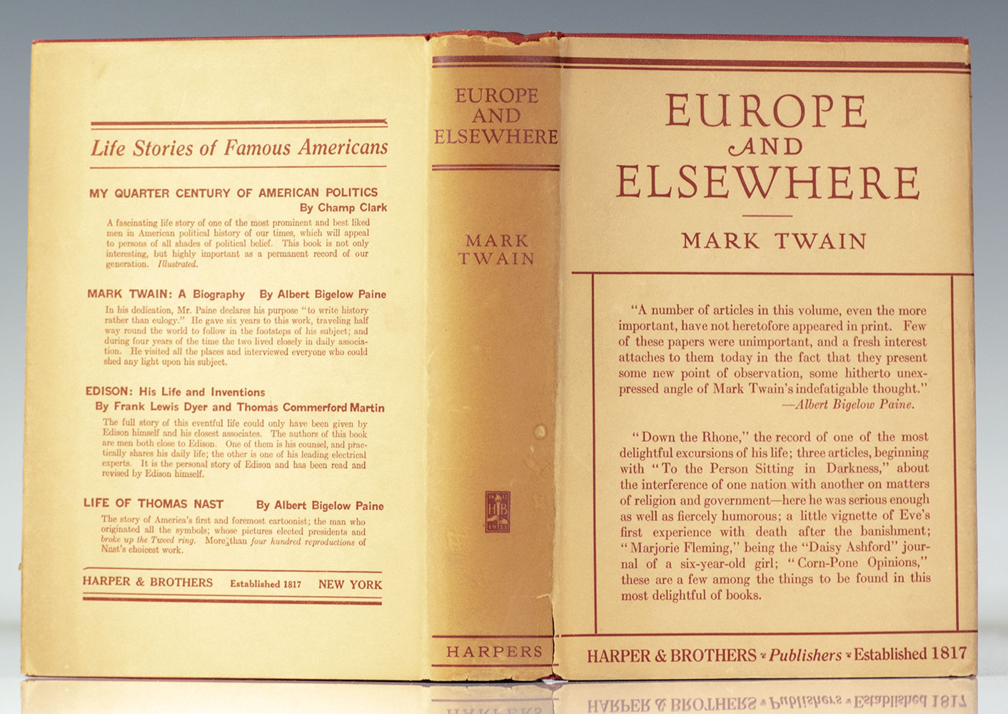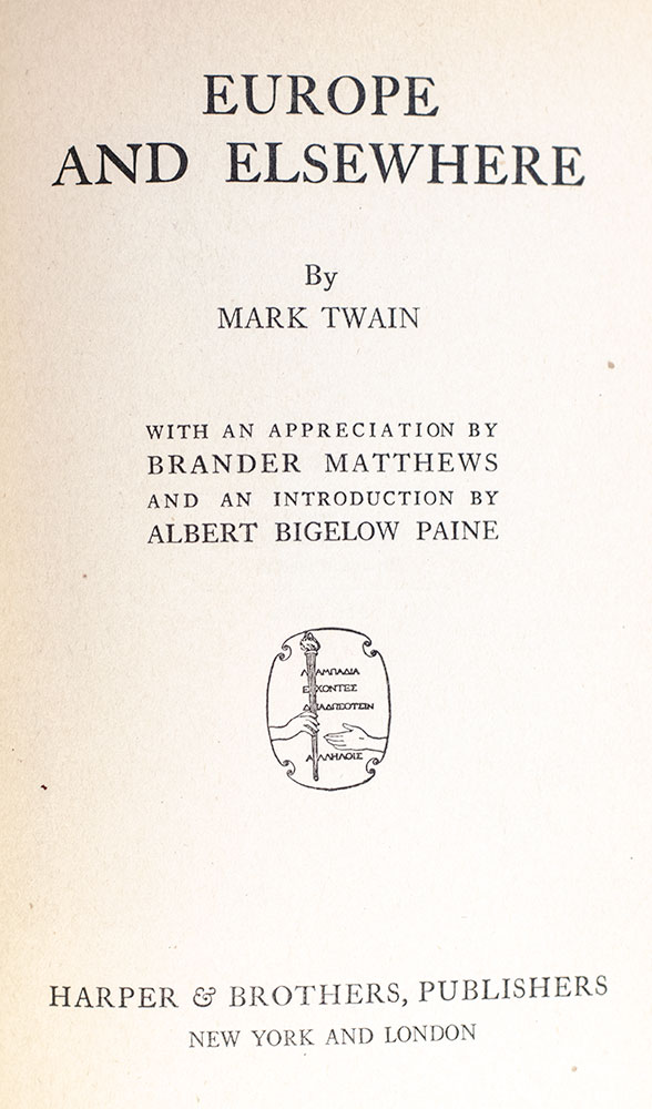 "Its name is Public Opinion. It is held in reverence. It settles everything. Some think it is the voice of God": Mark Twain's Europe and Elsewhere; In the Rare Original Dust Jacket