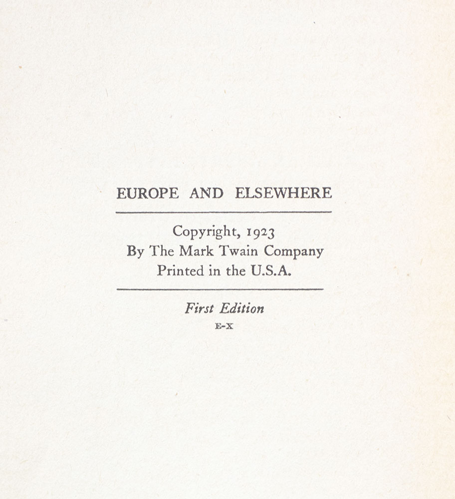 This volume contains thirty-five articles of varying length dated all along through the years from the early '70's to 1908. Some of them had newspaper or magazine publication at the time, but most of them are now put into print for the first time. "A number of articles in this volume, even the more important, have not heretofore appeared in print. Few of these papers were unimportant, and a fresh interest attaches to them today in the fact that they present some new point of observation, some hitherto unexpected angle of Mark Twain's indefatigable thought" (Albert Bigelow Paine).