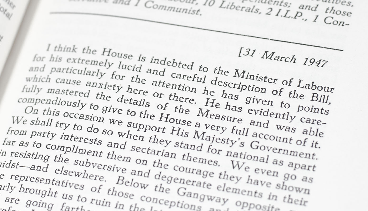 First edition of this collection of fifty-two speeches delivered between 1947 and 1948. Octavo, bound in three quarters blue morocco by Bayntun-Riviere with gilt titles and tooling to the spine in six compartments within raised bands, marbled endpapers and gilt topstain. In fine condition.