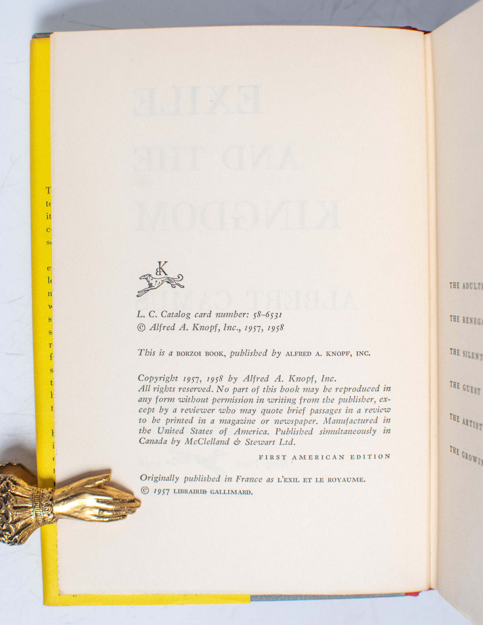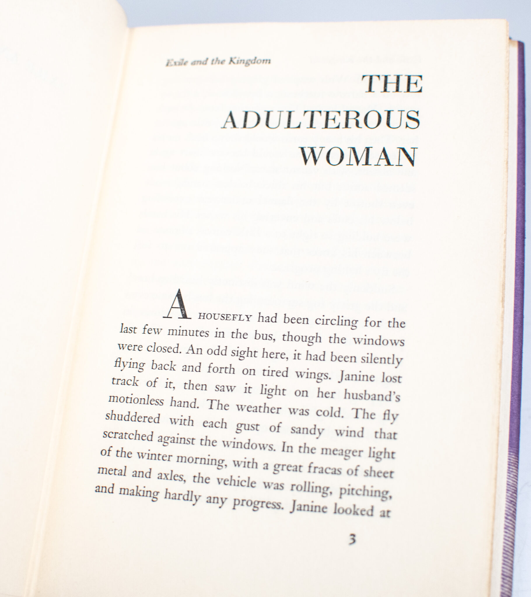 “Above all, she loved being loved, and he had flooded her with attentions": First American edition of Albert Camus' Exile and the Kingdom
