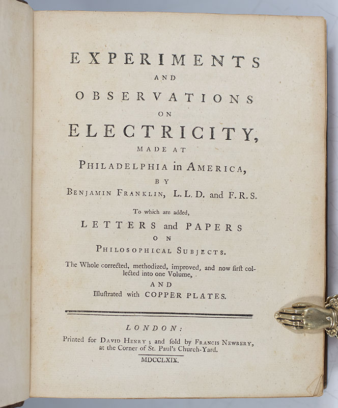 "The most important scientific book of 18th century America": Rare First Complete Edition of Franklin's Experiments and Observations on Electricity, Made at Philadelphia in America