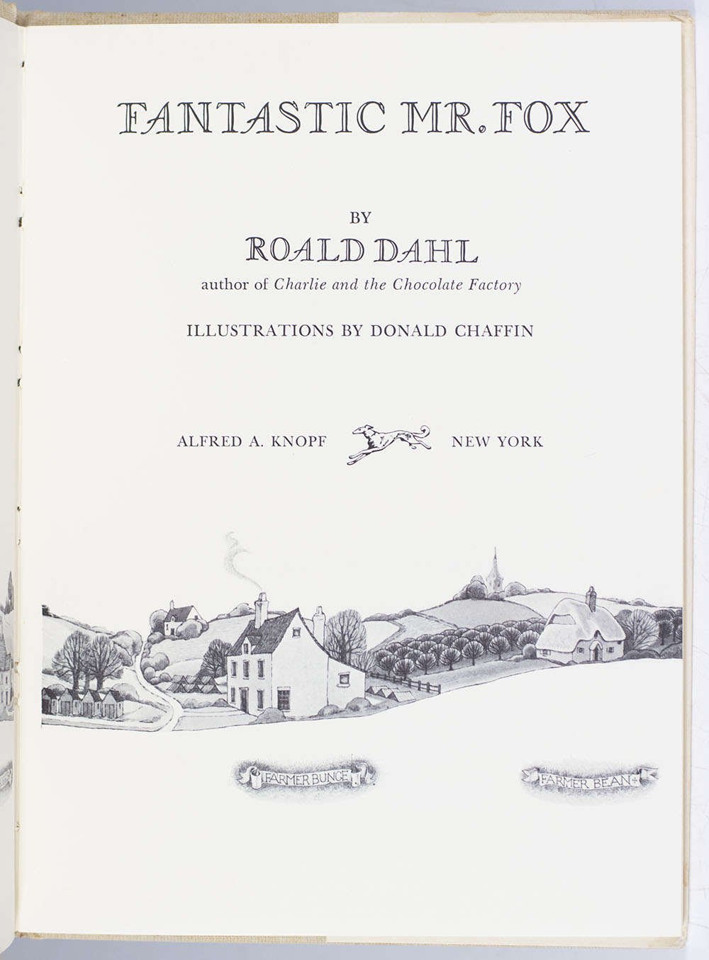 First edition of Dahl's classic children's work in the tradition of The Adventures of Peter Rabbit, this is a "garden tale" of farmer versus vermin, or vice versa. Octavo, original beige cloth. Boldly signed by Roald Dahl on the front free endpaper. Illustrated by Donald Chaffin. Jacket design by Donna Lampell. Fine in a near fine dust jacket.
