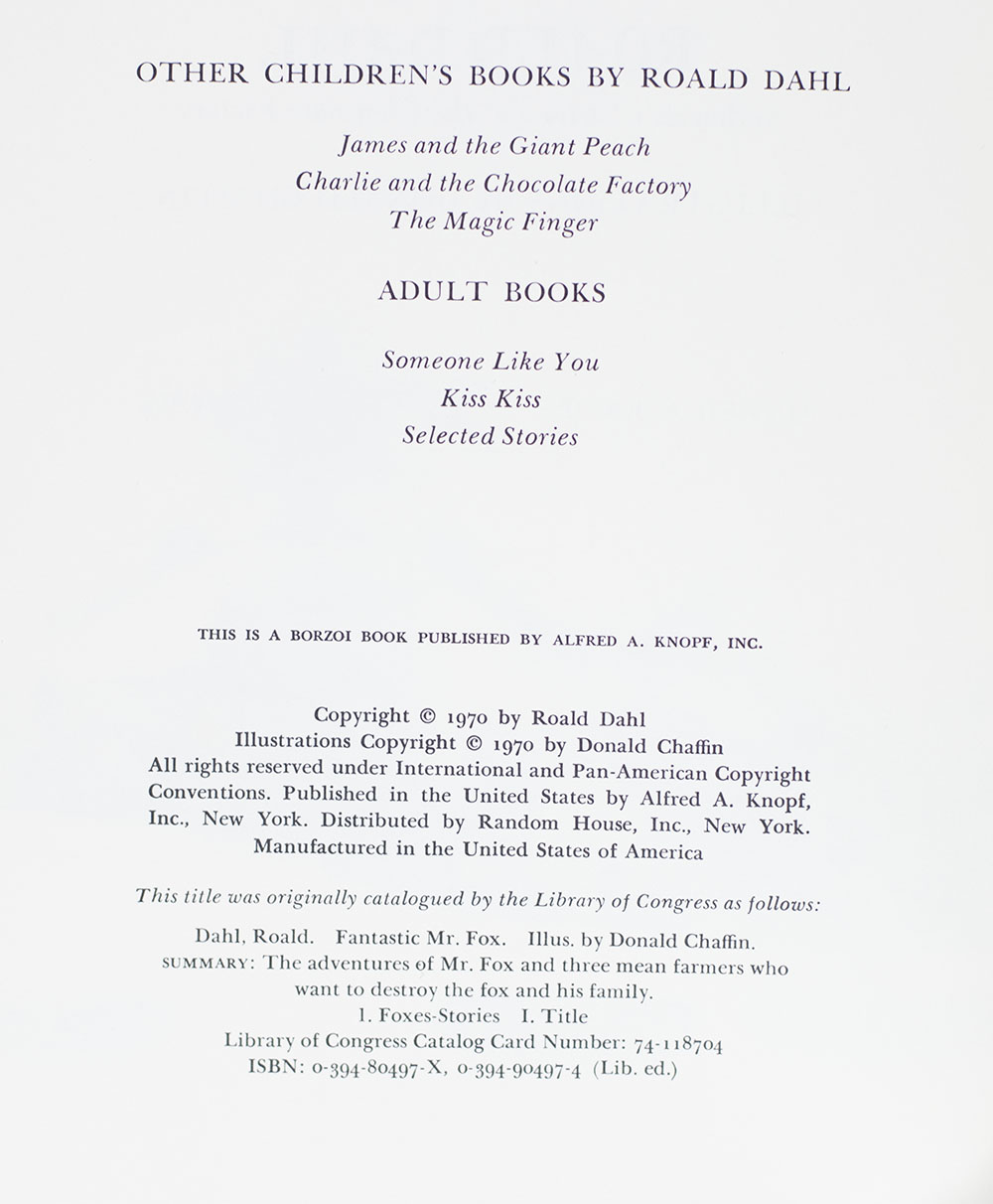 “I understand what you're saying, and your comments are valuable, but I'm gonna ignore your advice": First Edition of Roald Dahl's Fantastic Mr. Fox; Signed by Him