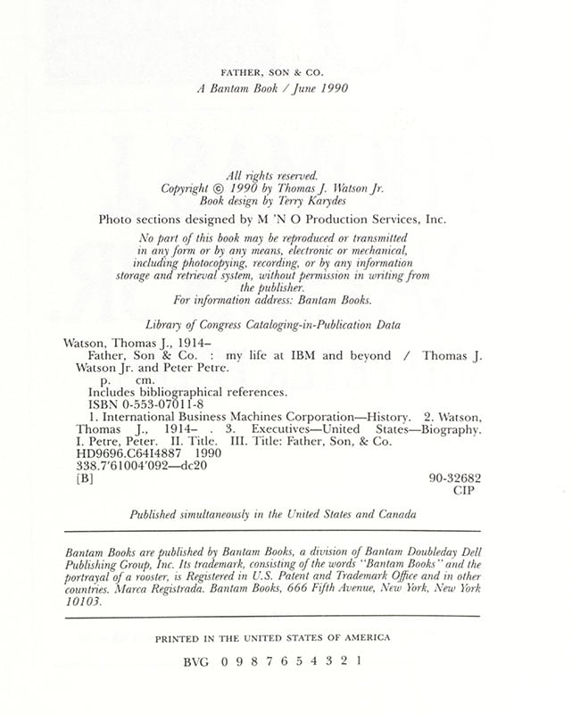 "As I associated with more and more different types, I realized that to make it, you had to get along with almost everybody": First Edition of Watson's Father, Son & Co.: My Life at IBM and Beyond