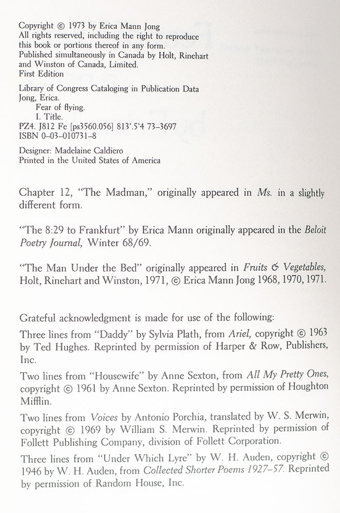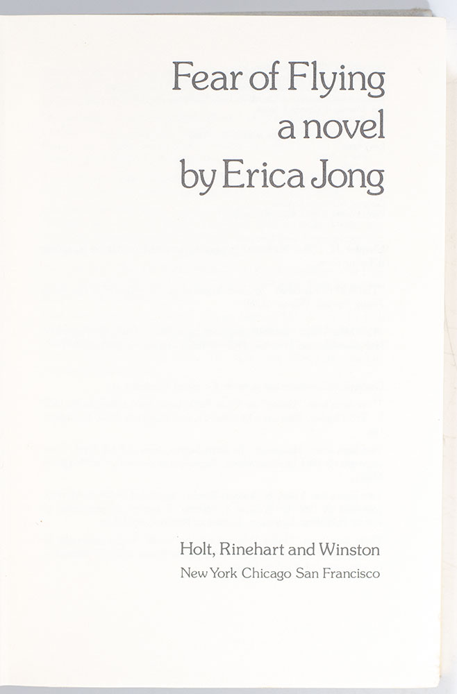 “The truth is simple, you do not die from love. You only wish you did": First edition of Erica Jong's Fear of Flying; inscribed by her