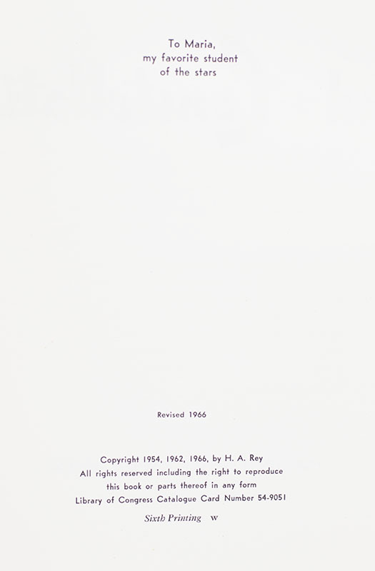 Perhaps best known for co-creating, along with his wife Margret, the beloved children's character Curious George, H.A. Rey nurtured a lifelong passion for astronomy, and in addition to publishing two books on the subject for children also contributed illustrations to numerous constellation guides, which are still in print today.