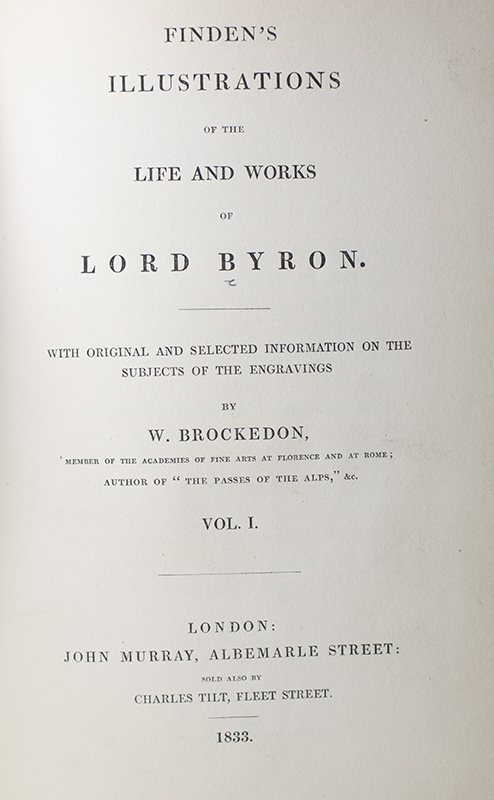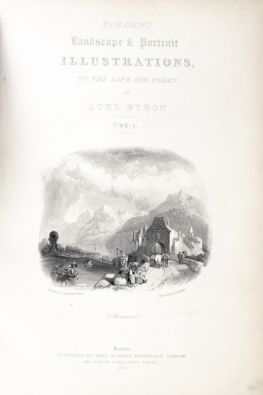 "It was William and Edward Finden's illustrations to Byron that substantially enhanced the status of their work. Following his death in Greece in 1824, their engravings sensitively conveyed to a wide contemporary audience images of Byron's life and work. Finden's Landscape Illustrations to the Life and Works of Byron finally appeared in fourteen monthly parts, with both Murray's and Tilt's names on the paper wrappers, from January 1832. [The Illustrations] created a great sensation, and led to further projects to engrave the life and works of other poets" (ODNB).