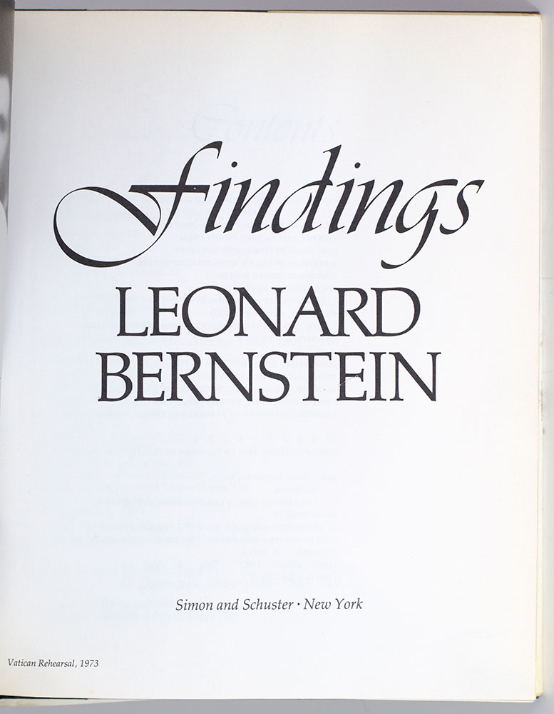 First edition of Findings; inscribed by Leonard Bernstein to his editor and personal assistant Jack Gottlieb
